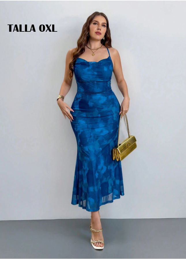 VESTIDO AZUL CURVY CON DISEÑO EN TONOS AZULES, TALLA 0XL
