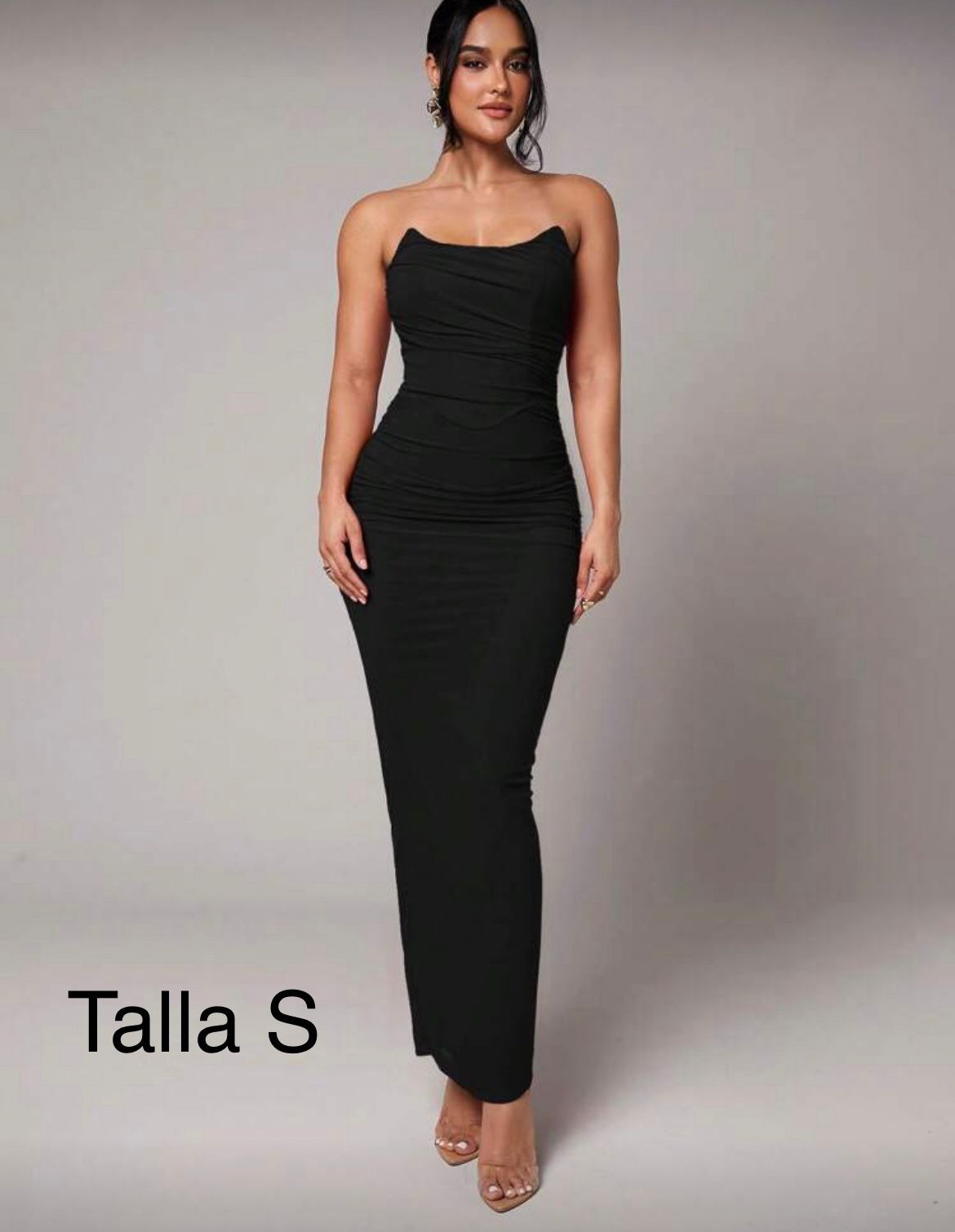 VESTIDO LARGO, COLOR NEGRO Y CEÑIDO DEL CUERPO