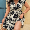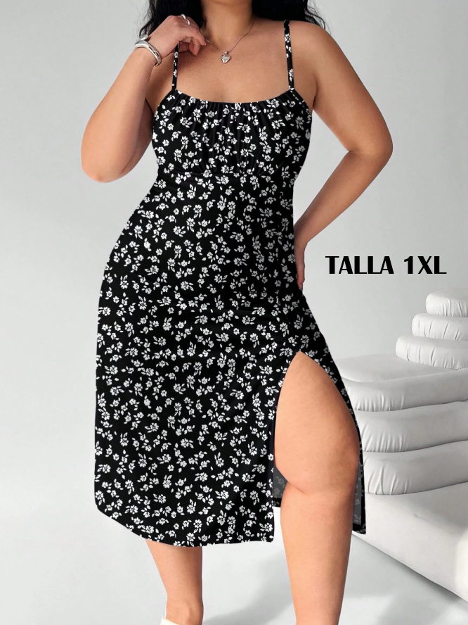 VESTIDO CURVY COLOR NEGRO CON DISEÑO DE FLORES EN TONO BLANCO, TALLA 1XL