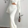 VESTIDO LARGO, COLOR ROJO CON HOMBROS DESCUBIERTOS, DETALLE DE FLORES EN EL HOMBRO Y ABERTURA ALTA EN LA PIERNA