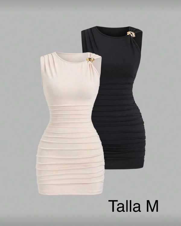 VENTA INDIVIDUAL, APLIZADO DE LA PARTE DE ABAJO Y SIN MANGA EN COLOR BLANCO Y NEGRO.
